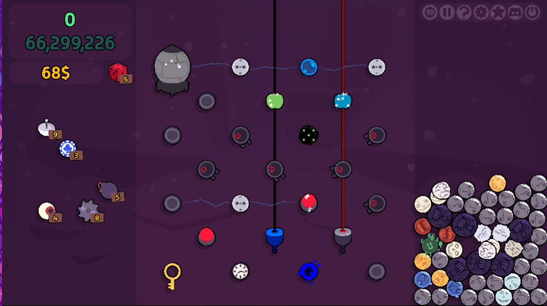 you put the key above cauldron which when upgraded gives you the yellow potions (all types of potions upgraded or not can be placed anywhere), and when the key is put above the portal, any new portals bought from the shop can be placed anywhere on the board, does not have to be on a peg. how did I get to that point? lots of multipliers and luck.